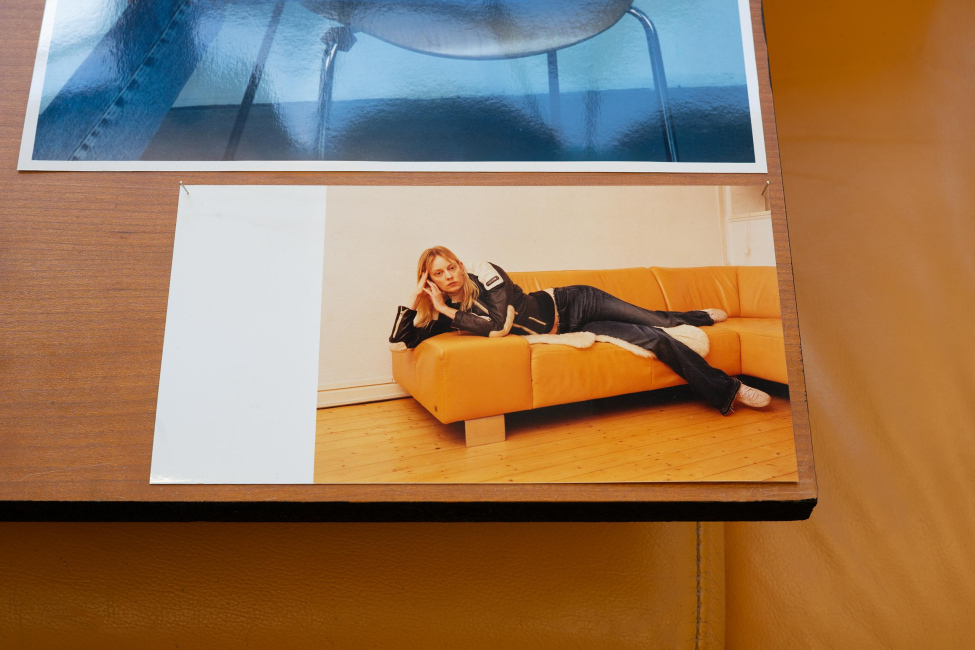 The Sitter transforms Inspiration (XYZ Books, 2025) into a physical installation of paper, photographic prints, nails, and furniture. It features replicas of the chairs and couches used during photo sessions with models, transforming them into tiny microcosms of objectification. Through self-portraiture and photographs of models, Matilde Søes Rasmussen recreates the poses of the historical artist’s muse Audrey Munson. The work draws on Rasmussens archive of over 1000 analog darkroom prints made for the book.